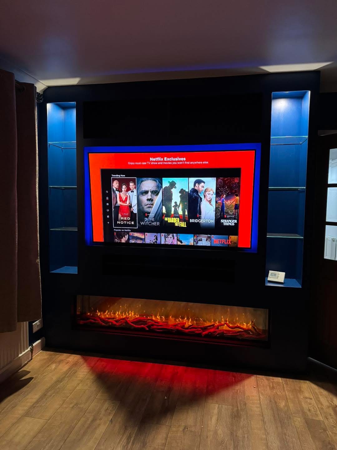“I’m amazed at how cozy it feels – the lighting on the shelves and fireplace create a perfect environment for watching movies, and the craftsmanship is second-to-none. I was able to describe to Dempsey exactly what I wanted, and he nailed it.”