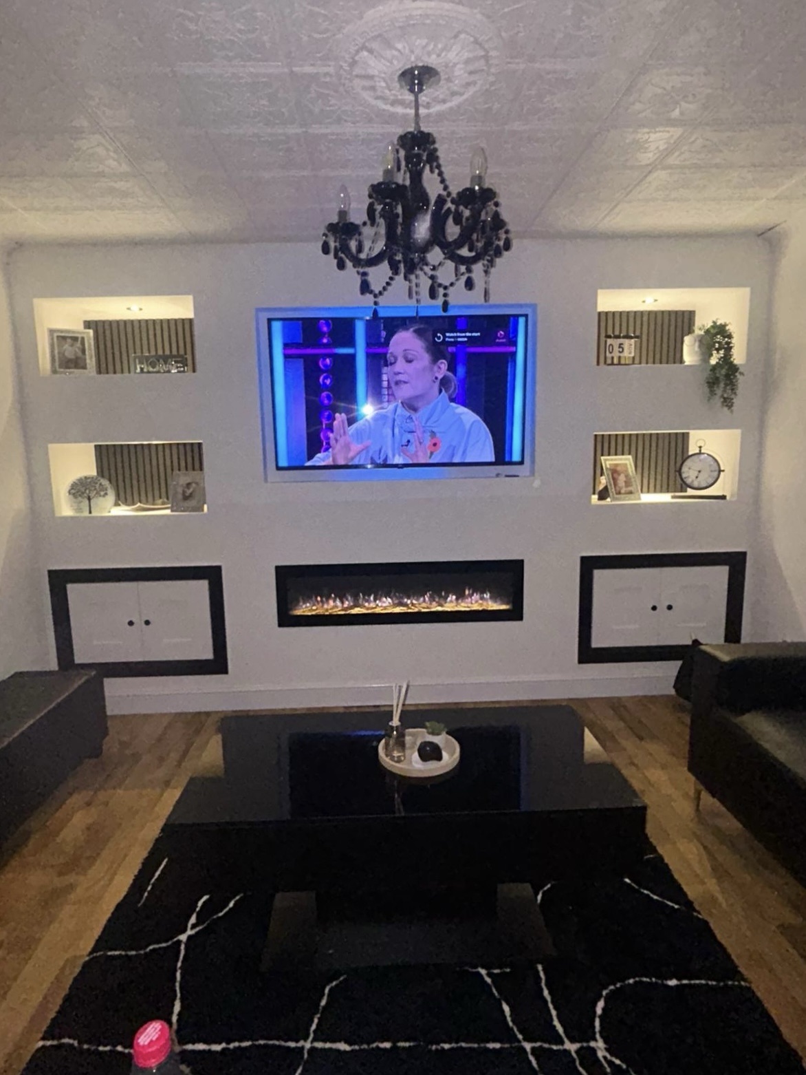 Media Wall Media wall complete with shelving, electric fireplace, and storage cupboards. (Completed November 2025) Share this: Share on X (Opens in new window) X Share on Facebook (Opens in new window) Facebook Like Loading... Related Comments are closed.