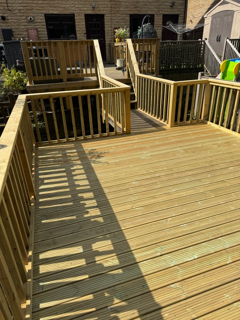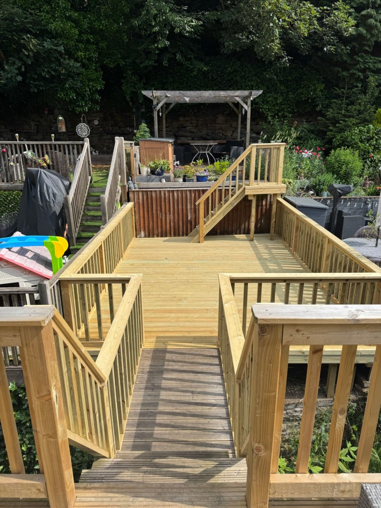 This one was more of a unique request – the decking just outside the house is attached to the main garden area by a small bridge that spans a stream below, ensuring that everything remains accessible and that space is used efficiently!