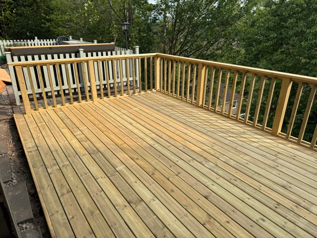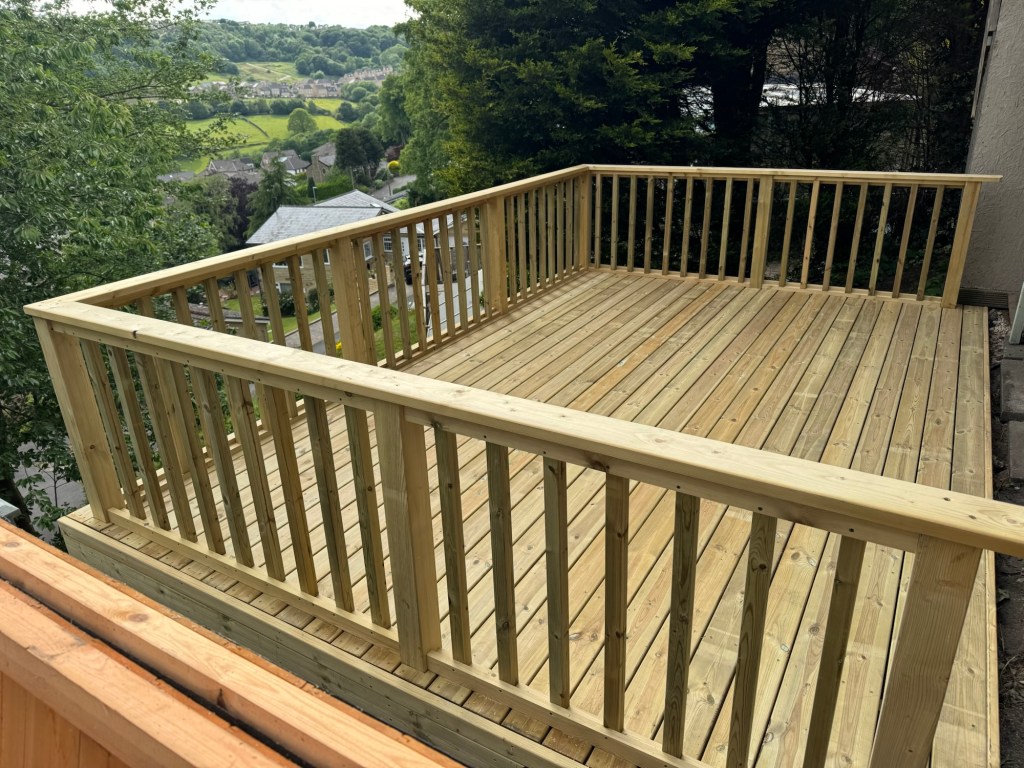 Making use of a severely sloped / sheer-drop back garden, this simple decked area makes the most of a smaller garden space – and provides a great viewing area for taking in the local landscapes.