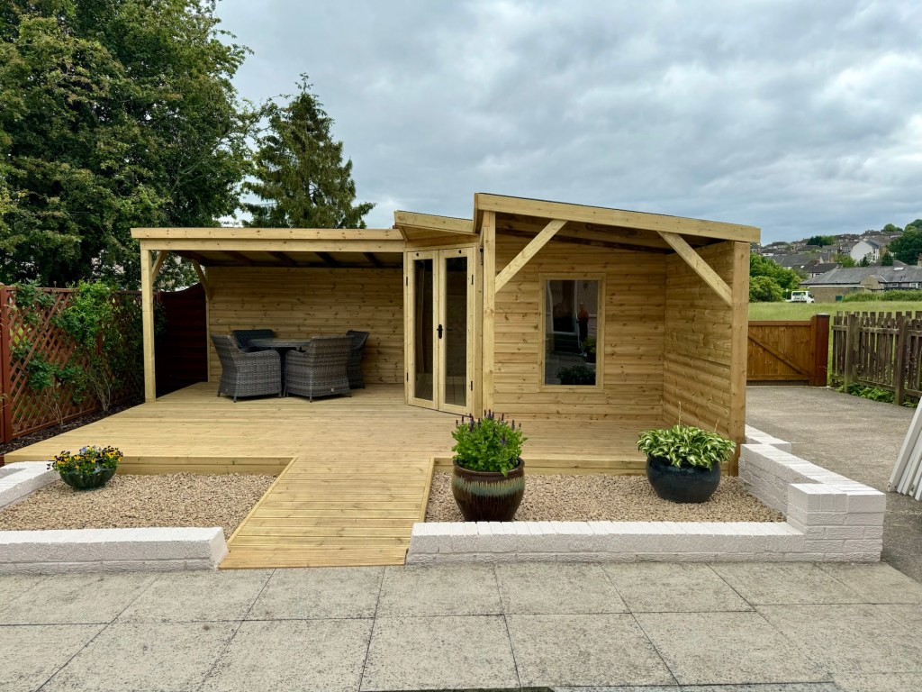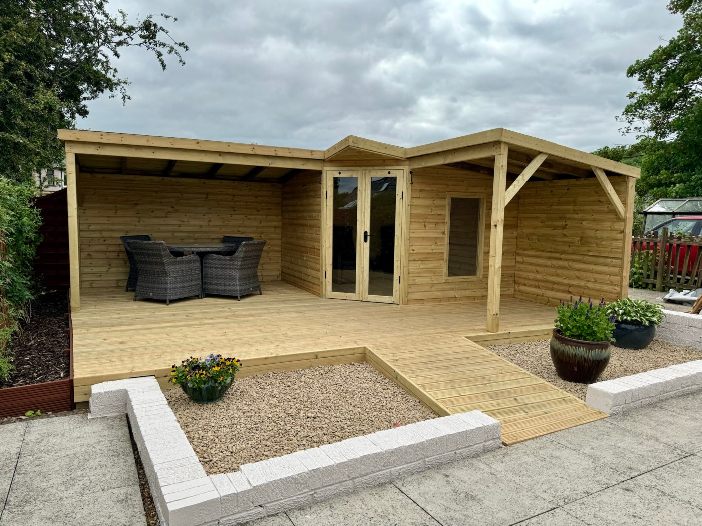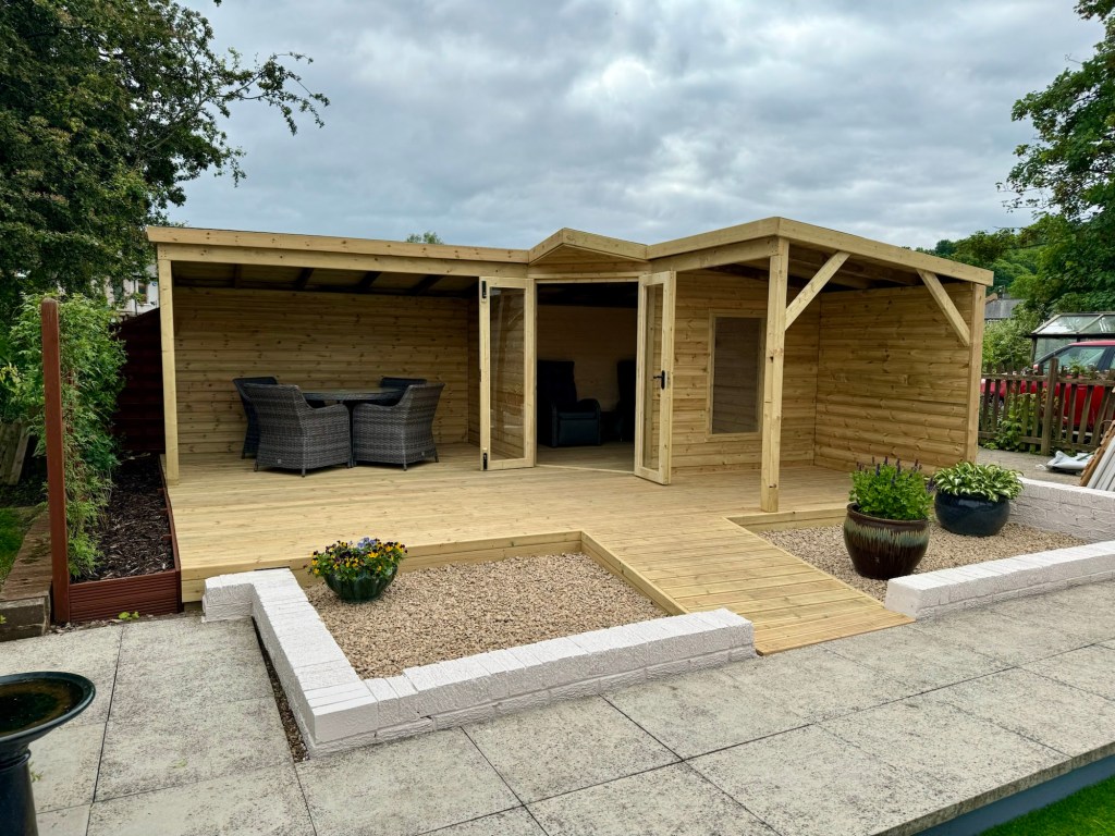 This garden room was built with accessibility in mind – French doors provide a wider opening for chairs and walking aids, with a low-incline ramp leading up to it. Stylish and functional!