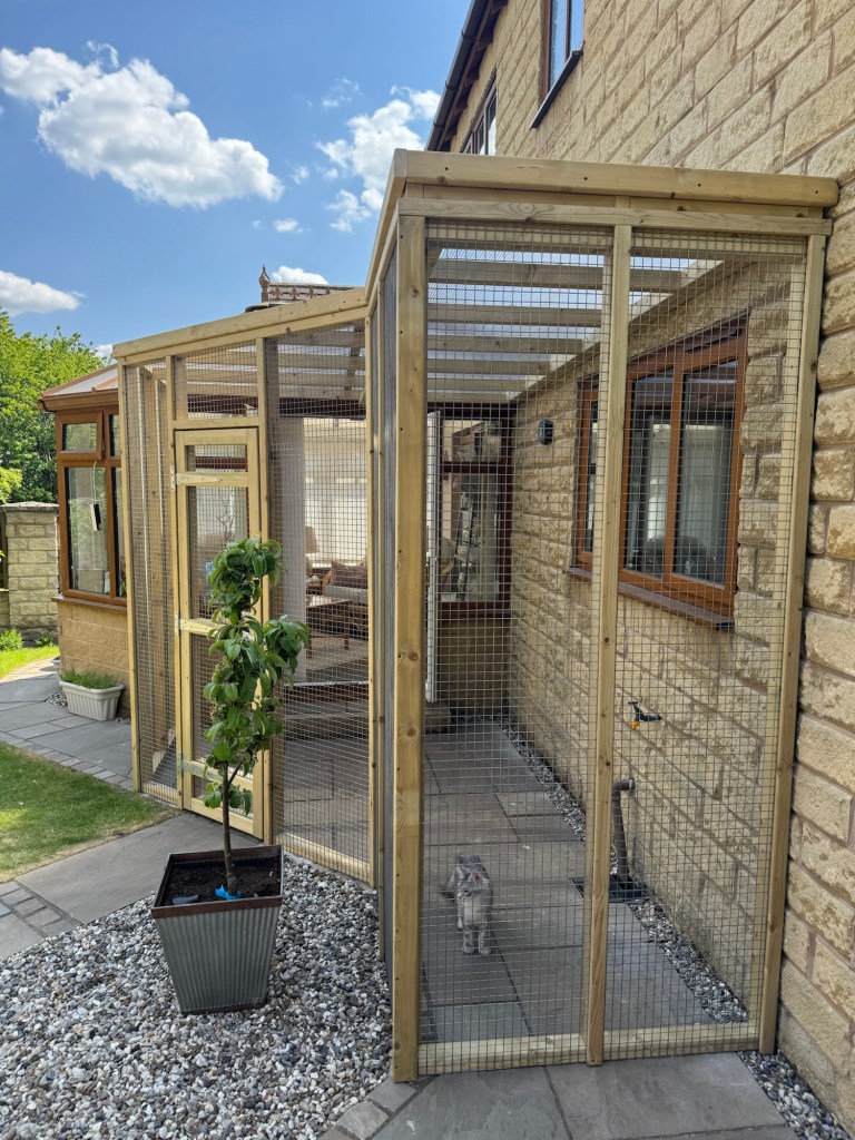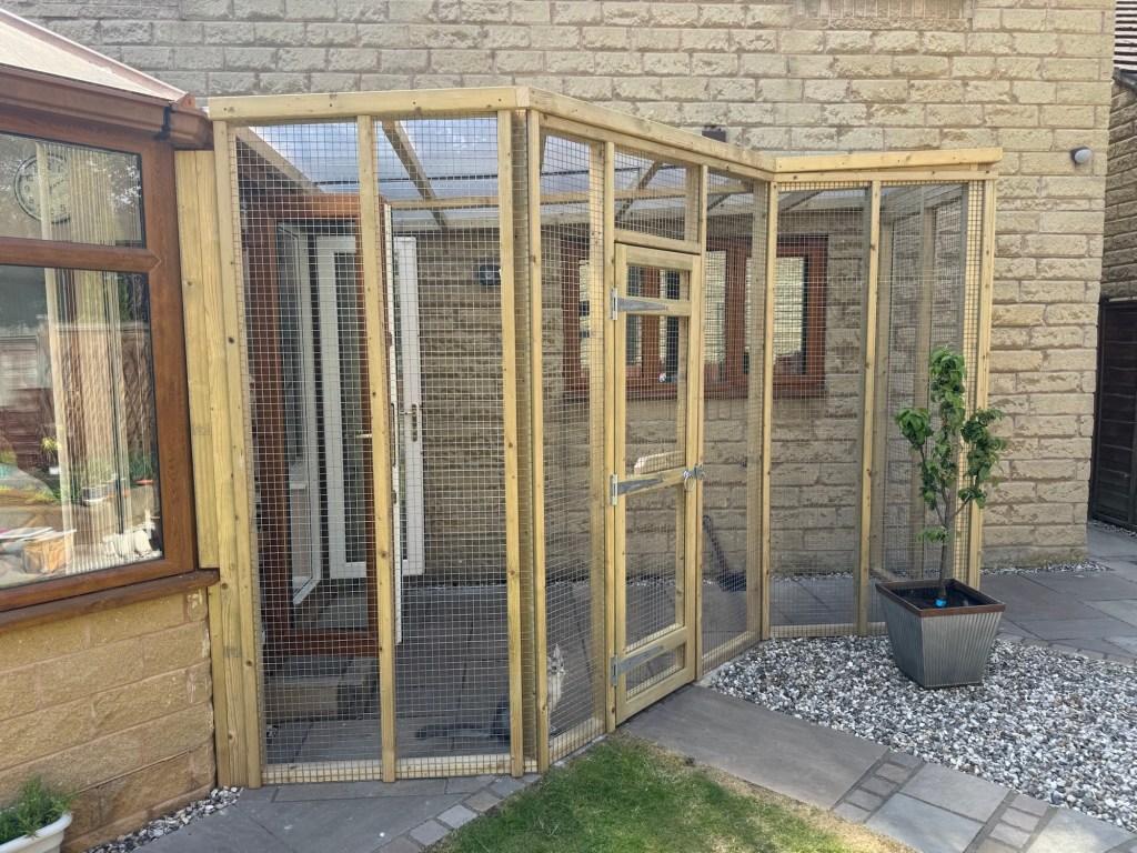 Another day, another pet-friendly outdoor area! Customer needed a catio for their kitten to be able to get fresh air. Complete with a door into the garden so they didn’t lose the access from the conservatory.