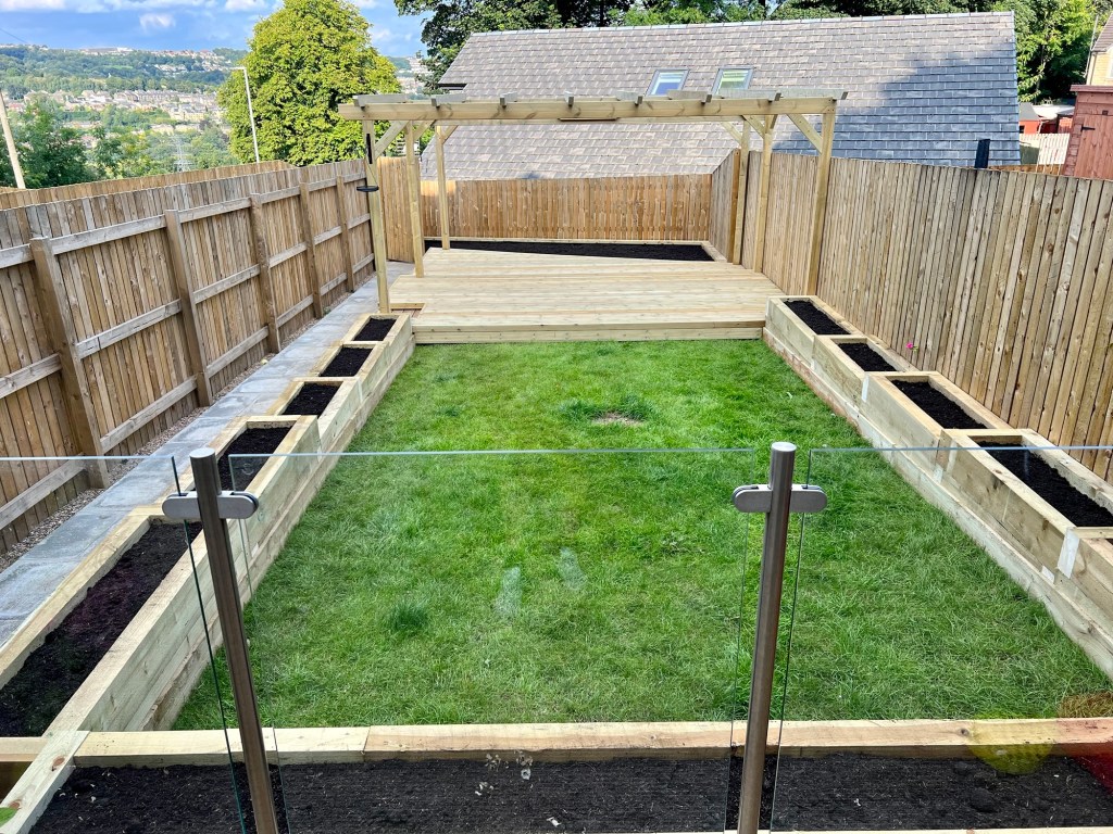 This customer now has it all – planters, pergola, fencing, and decking complete with glass railings so they can appreciate it from every angle!