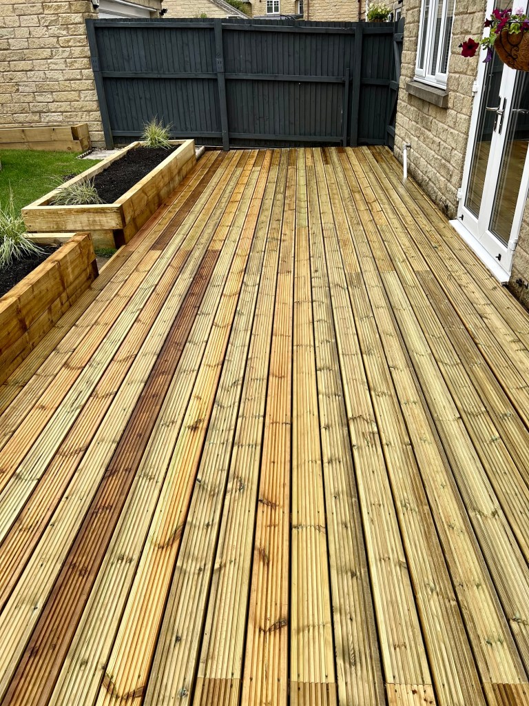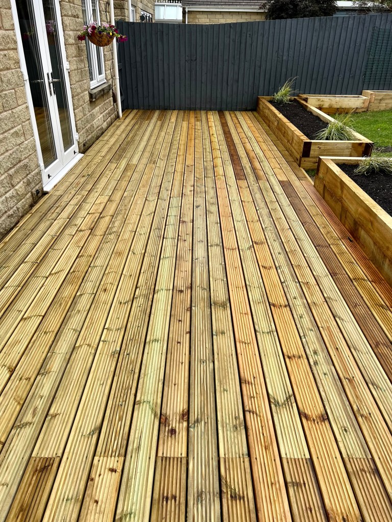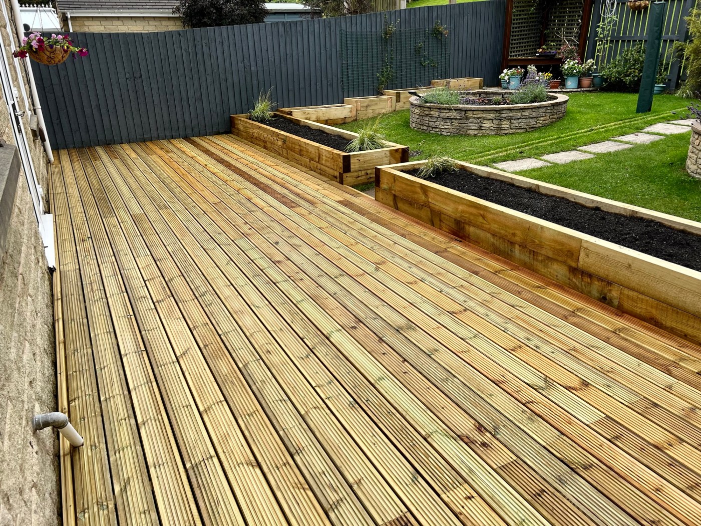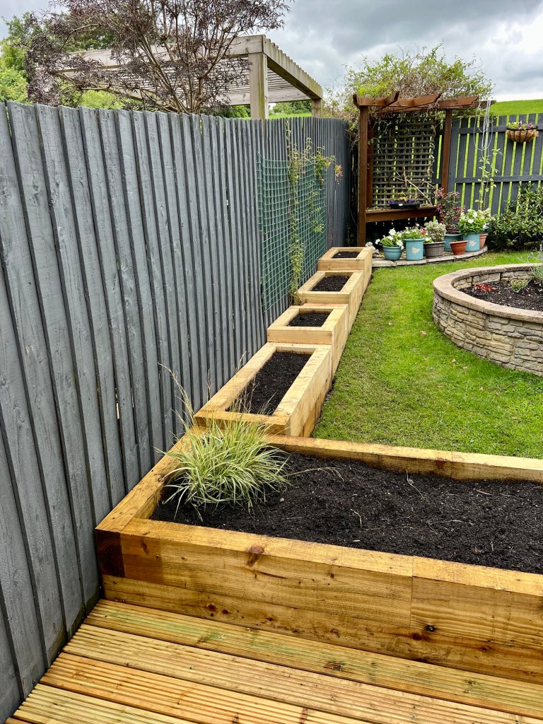 Combining decking and integrated planters, this garden is aesthetically pleasing and functional, and will look fantastic with some blooms in the spring.