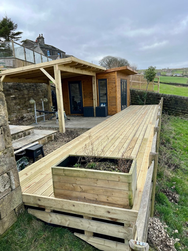 One of the biggest jobs yet completed – Pergola, Garden room, and Decking. Customer wanted to be able to enjoy their garden (and its stunning view) to its full potential!